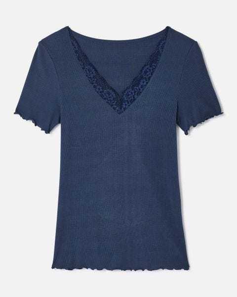 Porté dessous, le t-shirt manches courtes permet de se mettre en mode cocoon avec un bas de pyjama. Dessus, il rehausse toutes vos tenues.