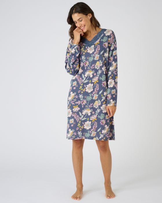 Imprimés fleuris, couleurs féminines et dentelle raffinée subliment cette chemise de nuit Thermolactyl !