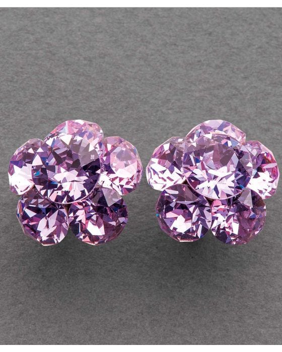 En forme de fleurs, ces boucles d'oreille sont ornées de 6 cristaux scintillants ou opalins. Dimensions 2 x 1,5 cm.