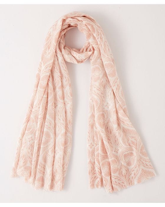Une écharpe en tissu léger au toucher doux. Son ajout de laine vous procure une agréable chaleur. Motif ethnique inspiration indienne. Finitions ourlet et extrémités frangées à cru. Grandes dimensions de l'écharpe femme 200 x 92 cm environ.