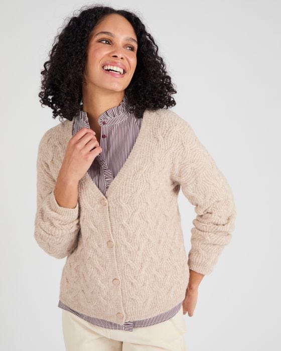 Succès garanti pour ce petit gilet entièrement torsadé... En maille labellisée Thermolactyl, il réchauffe délicatement vos petits hauts préférés ou se porte à même la peau pour vous entourer de douceur !