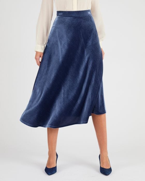 Effet dansant pour l'allure, taille élastiquée pour le confort, belle longueur mode... voilà une jupe qui a sa place dans le palmarès des pièces fétiches du dressing de fête... mais pas que ! # Velours ras fluide et doux # Stretch pour la liberté de mouvement # Contient des fibres recyclées