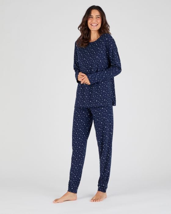 Rêveuse ou amoureuse des ciels étoilés, ce pyjama imprimé étoiles et lunes vous promet des nuits sous le signe de la douceur...
