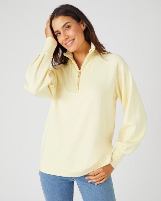 Grand succès des années 80, le pull camionneur fait un retour remarqué dans le vestiaire sportswear. Il s'adoucit d'un molleton gratté à l'intérieur qui nous tient bien chaud lors de nos balades et de nos activités sportives ou de détente. Le col montant zippé (zip coloris doré) joue le contraste matière d'une maille côtelée. Manches raglan. Bord-côtes au bas des manches et à la base. Longueur de ce sweat-shirt femme : 61 cm environ.