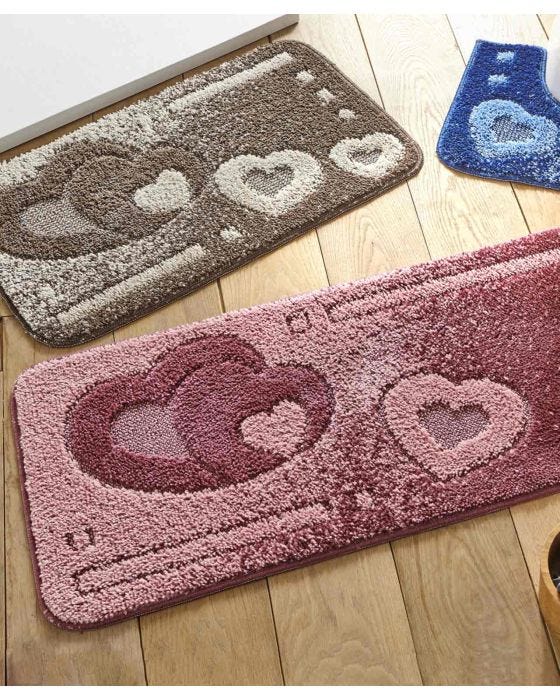 Un motif coeurs reliéfé romantique et féminin, sur un tissage boucle moelleux et doux pour une touche de tendresse dans votre salle de bain !