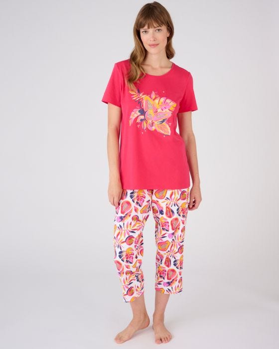 Confort et style avec ce tee-shirt de pyjama à mixer au pantacourt de la même gamme !